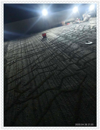 表面覆盖法所用材料视修补目的及建筑物所处环境不同而异,通常采用弹性涂膜防水材料,聚合物水泥膏、聚合物薄膜(粘贴)等。施工时,首先用钢丝刷子将混凝土表面打毛,清除表面附着物,用水冲洗干净后充分干燥,然后用树脂充填混凝土表面的气孔,再用修补材料涂覆表面。