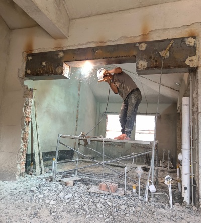 别墅门洞改造包包钢加固是通过在构件表面粘贴钢板,利用钢板的高强度来分担原构件的受力,能大幅提升梁、柱、板等结构的抗弯、抗剪和抗压能力,特别适合应对建筑荷载增加、原结构强度不足的情况。