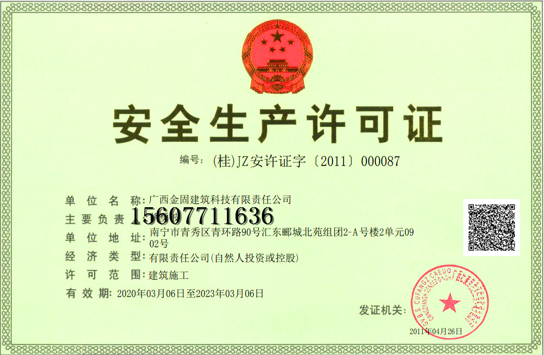 广西加固《安全生产许可证条例》是为了严格规范安全生产条件,进一步加强安全生产监督管理,防止和减少生产安全事故,根据《中华人民共和国安全生产法》的有关规定制定的条例。2004年1月13日中华人民共和国国务院令第397号公布,自公布之日起施行。根据2013年7月18日《国务院关于废止和修改部分行政法规的决定》第一次修订。根据2014年7月29日《国务院关于修改部分行政法规的决定》第二次修订。