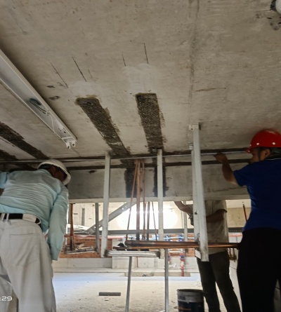 结构改造工程由于异形柱截面的特点,加固柱肢端部会出现较大应力,加上加固梁作用于柱肢上应力的不均匀,一般越靠肢端应力越大,对柱肢形成偏心压力,进一步加大肢端压预应力。贵港平南县加固公司因而在异形柱配筋时,加强应在肢端设暗柱,暗柱的外排钢筋由计算而定。碳纤维离端部厚度范围内设2-4Ф14的构造纵筋,箍筋同柱,植筋胶这样可限制柱肢的砼裂缝的开展,提高异形柱局部抗压抗剪强度及变形能力。柱上的箍筋不仅能抗剪,也可约束砼变形,增大其延性加固。